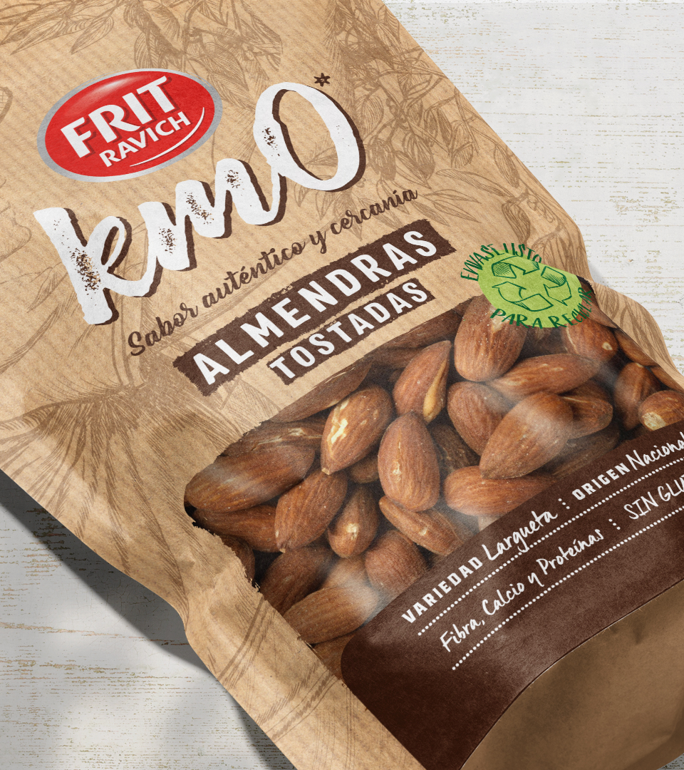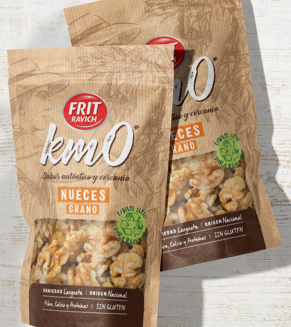 El resultado es una línea de frutos secos que combina proximidad y calidad, con una imagen más premium que la gama Core, sin perder su enfoque en la naturalidad y la visibilidad del producto. La submarca Km0 refuerza la conexión con el producto local, destacando la autenticidad y el compromiso de Frit Ravich con los valores de sostenibilidad y cercanía.